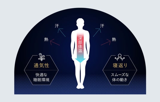 人は眠るときに、深部体温を下げることで、副交感神経が優位になり、リラックスして深い眠り(ノンレム睡眠)に入ります。マットレスの「通気性」と「寝返りのしやすさ」は、深い睡眠に必要な快適な睡眠環境のために重要な役割を担っています。