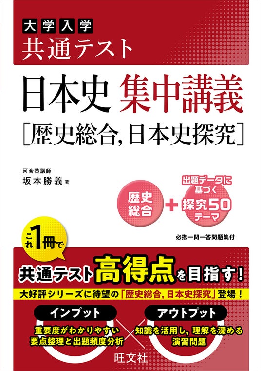 教育出版の株式会社旺文社(東京都新宿区、代表取締役社長 粂川秀樹)は、「共通テスト集中講義」シリーズ『共通テスト 日本史 集中講義[歴史総合,日本史探究]』を9月9日(月)に刊行いたします。