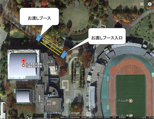 配布場所/NDソフトスタジアム山形 もんてらんど 並木道(スタジアム北側)