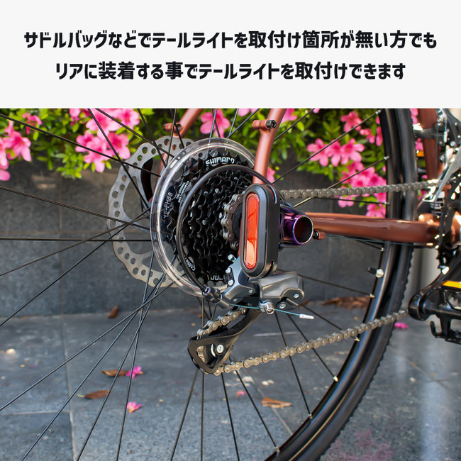サドルバッグなどでテールライトを取付け箇所が無い方でもリアに装着する事でテールライトを取付けできます。