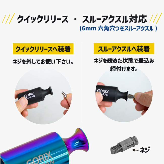 対応 クイックリリース / 6mm六角穴つきスルーアクスル