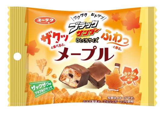 秋から冬にかけてお菓子やカフェメニューで人気が高まる「メープル」フレーバーをテーマにした、楽しいザクッと食感を楽しめるひとくちサイズのブラックサンダーをぜひお楽しみください。