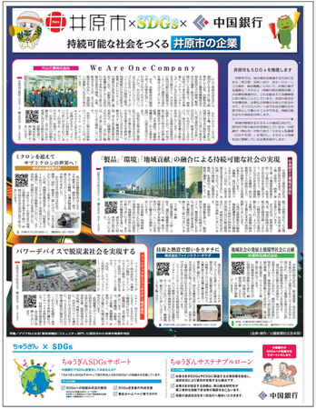 中国銀行(岡山市北区丸の内一丁目15番20号 頭取 加藤 貞則)では、私募債発行を通じ、地域社会に貢献する企業を応援しております。今般、当行では井原市内に本社を置く井原砕石株式会社、片山工業株式会社、中島硝子工業株式会社、株式会社ファインテクノ・タケダ、フェニテックセミコンダクタ-株式会社、株式会社藤原製作所、計6社合同による『SDGs私募債「広告PR型」※』の引受けと財務代理人を務めることとなり、その手数料の一部で、発行企業さまのSDGsに関する取組みについての広告を掲載いたします。