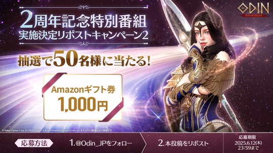 また、6月6日(金)より、特別番組を記念したフォロー&リポストキャンペーンを『オーディン:ヴァルハラ・ライジング』公式X(旧Twitter)にて追加開催しています。