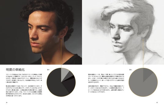 美術理論や教育的な視点だけでなく、実践的な内容も豊富に盛り込まれています。構図の分析、具体的な技法の練習、わかりやすい図解、そして美しい完成作品の数々。学術的でありながら哲学的な視点で、Bauman はポートレートの世界を深く掘り下げます。それは混沌としていて、素晴らしく、ときに魔法のような世界です。