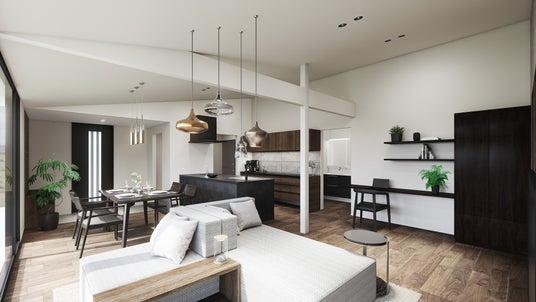 カラフルな家具やブラック系のインテリアを配置すると空間にアクセントが生まれ、個性的な空間を作りあげます。