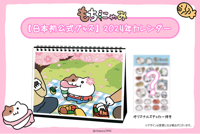 韓国でも販売開始後に即完売&再販売と大反響だったカレンダーグッズが、日本でも初公式グッズとして発売が決定いたしました。作家chaesoによる完全書き下ろしの日本限定版「もちにゃみ2024年カレンダー&ステッカー」の予約販売を2月26日(月)12時よりIMXストアにて開始いたします。