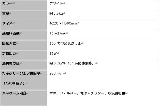 ■Mijia ペット用スマート空気清浄機 スペック概要