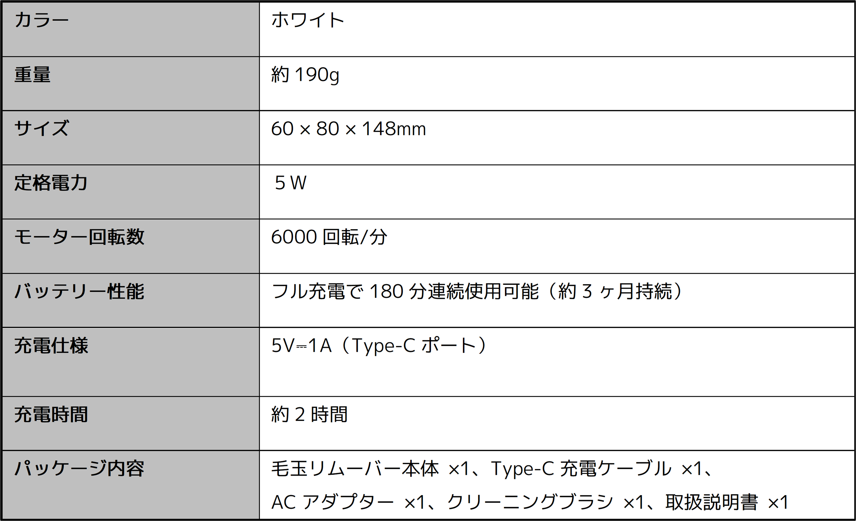 1回のフル充電で最大180分の連続使用が可能です。頻繁な充電を必要とせず、一度の充電で約3ヶ月間(※使用状況による)使い続けられるため、忙しい衣替えの時期にもサッと取り出してすぐに使えます。約190gと軽量でコンパクトなため、あらゆる布製品のケアに最適な一台です。