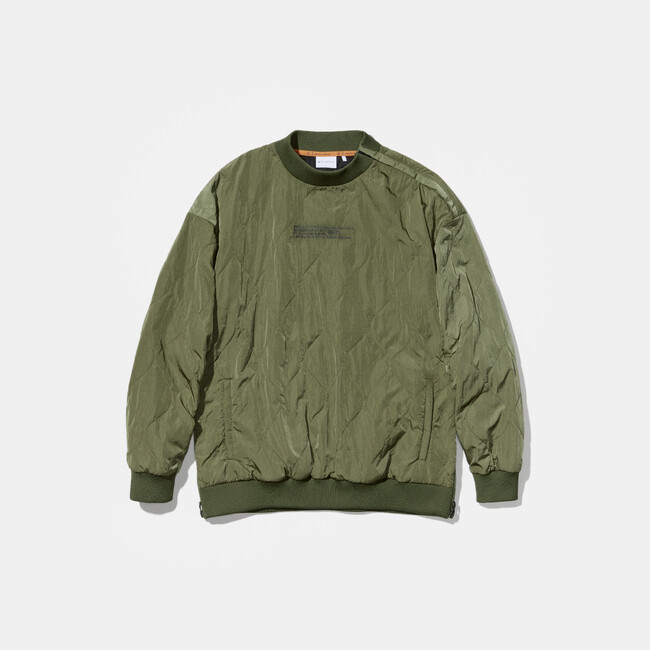 軽量ながら保温効果の高い素材をキルティング仕様で仕立て上げたプルオーバーシャツ。フロントにメッセージの刺繍が入り、バックにブランドロゴ刺繍を施したデザインとなっています。