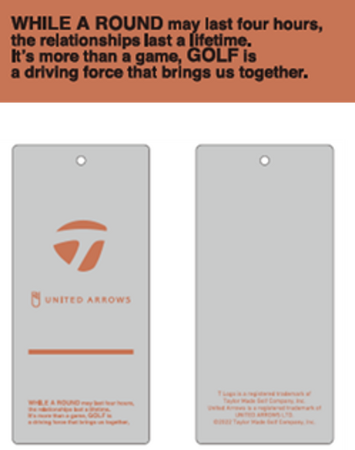 “ゴルフはプレーヤー同士の関係性を繋ぐ力になる”という思想のもと、テーラーメイドがブランドコンセプトの一つに掲げる“Relatable”を今回のコラボレーションのコンセプトにも採用しました。一部ウェアの肩や袖部分のワンポイントのほか、ユナイテッドアローズとテーラーメイドのロゴを並べた商品タグにコンセプトメッセージを記載しています。