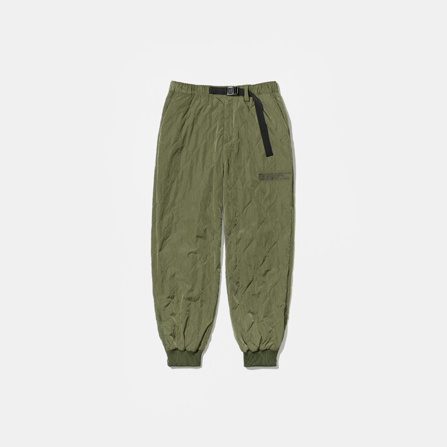 軽量ながら保温効果の高い素材をキルティング仕様で仕立て上げたロングパンツです。オリジナルベルトが付属します。