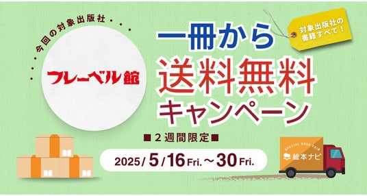 絵本ナビでは、2025年5月30日まで、フレーベル館の全作品を1冊から国内配送料無料でお届けします。