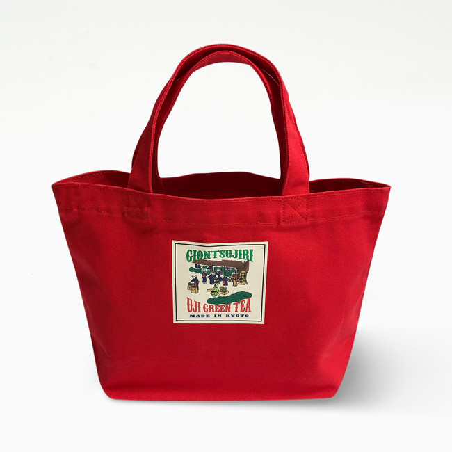 ランチバッグサイズでちょっとしたお買い物にもピッタリなオリジナル手提げは、蘭字(明治時代に日本茶を輸出する際の茶箱ラベル)風のデザインで、このセットだけの非売品です。