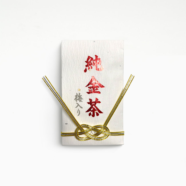 梅肉のさっぱりとした酸味と昆布エキスの旨味が感じられるお茶です。高級感のある金箔付。
