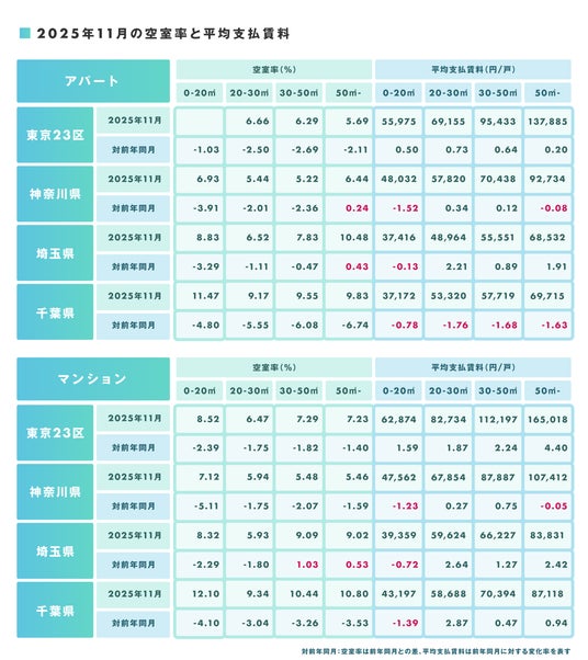 ■2025年11月の空室率と平均支払賃料および前年同月比