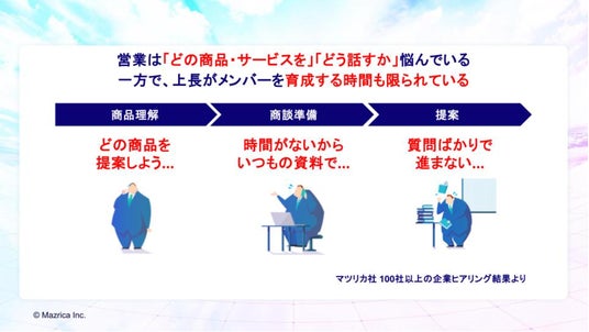 一方、マネージャーは多忙で、メンバー一人ひとりへの十分な育成・サポートの時間を確保できていません。その結果、経験の浅いメンバーは手探りで提案を進めるしかなく、「どの顧客に、何を話すべきか」が不明確なまま、再現性のある成果を出せない状態に陥っています。これらの課題を包括的に解決し、営業組織全体の生産性と提案力を高めるために、本プロダクトを開発しました。