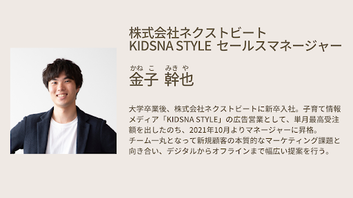 株式会社ネクストビート(本社:東京都渋谷区、代表取締役:三原誠司)が運営する、子育て情報メディア「KIDSNA STYLE(キズナスタイル)」は、2023年5月24日(水)に無料オンラインセミナーを開催いたします。
