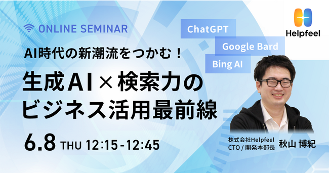 検索型FAQ「Helpfeel」( https://helpfeel.com/ )を提供する株式会社Helpfeel(京都府京都市 代表取締役/CEO:洛西 一周 以下、Helpfeel)は、注目を集める「生成AI」の最新動向を解説するオンラインセミナーを6月8日(木)に開催します。