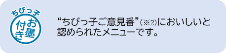 (※2)”ちびっ子ご意見番”とは、メニューの試作や試食を未就学児のいる親子に行ってもらう調査モニターです。