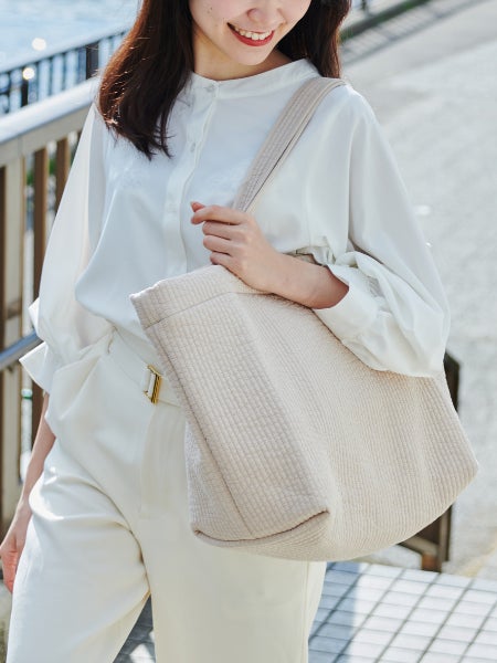 韓国のキルティング生地「イブル」を使った、シンプルでかわいいトートバッグです。軽量で大容量なので、マザーズバッグにもおすすめです。