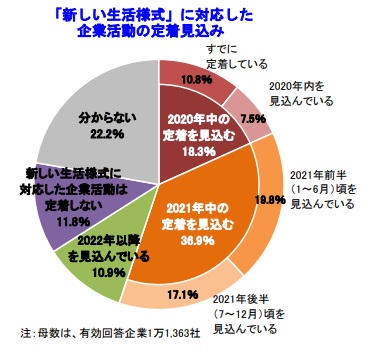 企業の 3 社に 1 社で、2021 年中に「新しい生活様式」に対応した企業活動の定着を見込む