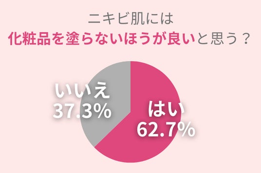 調査の結果、62.7%の方が「ニキビ肌には化粧品を塗らないほうが良い」と考えていることがわかりました。