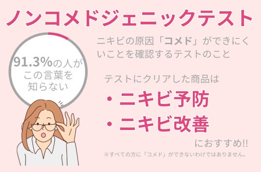 調査の結果、91.3%の方が「ノンコメドジェニックテスト」という言葉を知らないことが明らかになりました。