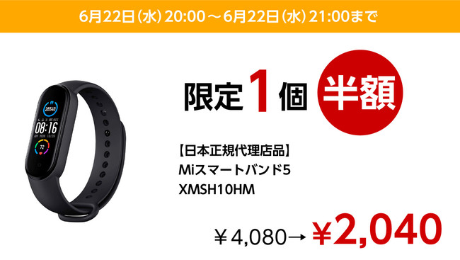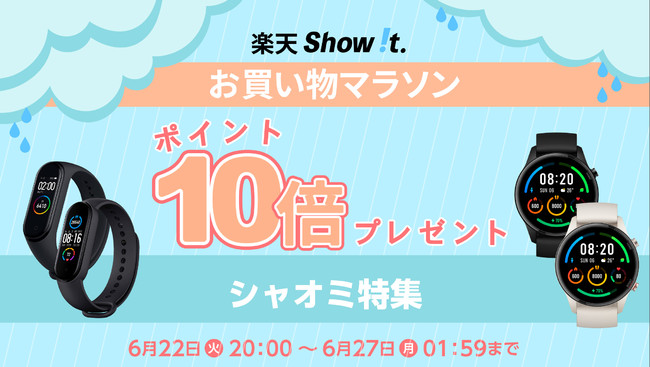 楽天市場「Show !t」は、6月22日(水)20時~21時Mi Band 5を限定1個半額で販売致します。さらに、ポイント最大10倍プレゼントを実施し、6月22日(水)20:00~6月27日(月)01:59まで開催される、楽天お買い物マラソンに参加します。Xiaomiのスマートウォッチが健康管理がしやすく、軽く装着感も気にならないバンド型で、これから運動の習慣をつけてスマートウォッチを取り入れようとしている人におすすめです。