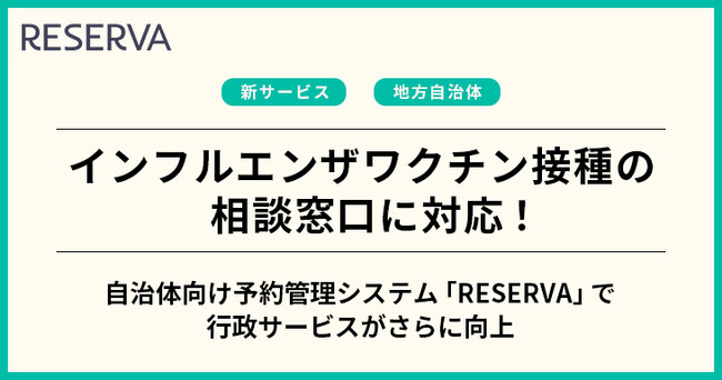 株式会社コントロールテクノロジーは、市役所や区役所、公共施設、税務署でも利用されている国内最大級の予約管理システム「RESERVA(https://reserva.be/)」を提供し、450超の自治体で導入実績を有しています。2022年10月より、多くの自治体で2022~2023年シーズン向けのインフルエンザ予防接種の案内が始まり、予防接種に関する相談が相次いでいます。それを受けて当社は、「インフルエンザワクチン接種の相談窓口」に特化した予約システムをリリースしました。