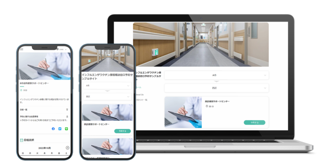 当社では、医療機関・クリニックで導入できる「インフルエンザワクチン接種」の予約受付に対応した予約システムの提供も行っています。自治体がインフルエンザワクチン接種を実施している医療機関・クリニックと連携することで、接種までのスムーズな流れを実現できます。詳細は以下をご確認ください。