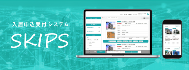「SKIPS」は空室情報の確認から契約書の発行まで、一連の業務をスマート化するクラウドサービスです。営業時間外でも、自動で入居申込を受付けることができ、さらに空室確認から内見予約、鍵の手配、入居申込、保証会社への審査依頼、契約までを行うことができます。
