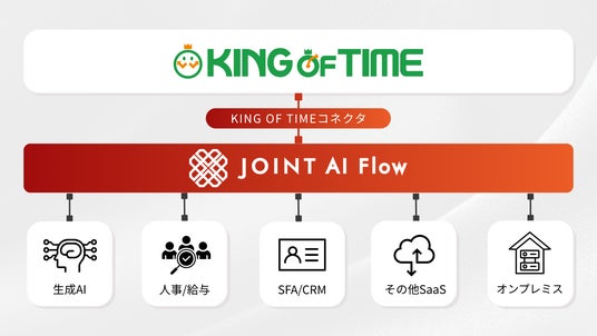 株式会社ストラテジット(本社:東京都港区、代表:加藤 史恵、以下当社)は、生成AI×業務システム連携プラットフォーム「JOINT AI Flow」において、株式会社ヒューマンテクノロジーズ(本社:東京都港区、代表:家崎 晃一)が提供するクラウド勤怠管理・人事給与システム「KING OF TIME」とのコネクタ提供を開始しました。