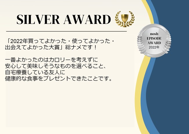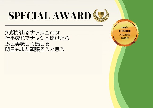 noshをご利用いただいたことがあるユーザーの方を対象に、2022年にあったnoshにまつわるエピソードを募集し、ご応募いただいたエピソードから、審査の上、グランプリ・準グランプリ・準々グランプリ・特別賞を決定しました。