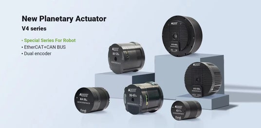 RMD-X V4シリーズ(汎用モデル)当社ではロボット向けに開発されたプラネタリギア採用のRMD-Xシリーズを2023年より販売しており、今回のRMD-X V4シリーズはその最新版。デュアルエンコーダーを搭載し、制御位置の向上、電源停止時の位置喪失を防止を実現しています。通信方式は、CAN BUSとEtherCATに対応しています。今回新たにRMD-X4-P12-10-Eの取り扱いを開始しました。