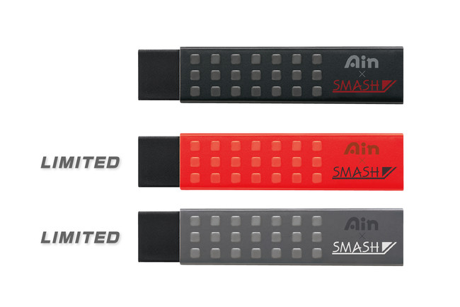 スリーブに特殊な印刷加工を施し、スマッシュのラバーグリップをイメージしています。お気に入りのスマッシュとペアで楽しめる、しっかり握れて消しやすい消しゴムです。レッドとダークグレーは限定販売です。