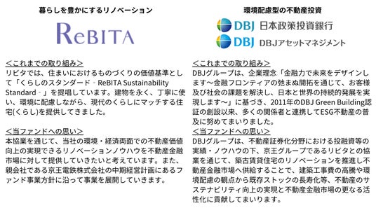 株式会社リビタ(本社:東京都目黒区、代表取締役社長:長谷川和憲、以下「リビタ」)、株式会社日本政策投資銀行(本社︓東京都千代田区、代表取締役社長︓地下誠二、以下「DBJ」)およびDBJアセットマネジメント株式会社(本社:東京都千代田区、代表取締役社長:窪田昌一郎、以下「DBJAM」)は、新たにリノベーションマネジメントの仕組みを導入した環境配慮型リノベーションファンド(以下「当ファンド」)を2024年7月31日(水)に組成し、運用を開始しました。当ファンドは、リノベーションノウハウを持つリビタと、金融と不動産に多様なチャネルを持ち、「DBJ Green Building認証(※1)」など独自の環境認証を持つDBJグループが協業することにより、老朽化した賃貸物件を環境配慮型不動産としてバリューアップして市場へ再流通させることを目的としています。リノベーションマネージャー(※2)による良質な住戸を提供し続ける仕組みを導入することで、「リノベーション×ESG投資」によるサステナブルな社会の実現を目指します。