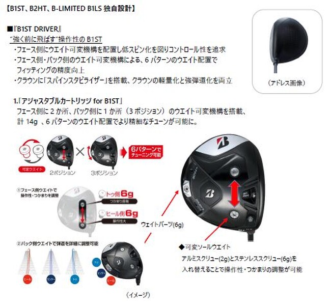 ブリヂストンスポーツ株式会社は、プロからのシビアなフィードバックの具現化に加え、歴代の商品で培った技術を昇華させ、更なる飛びの進化をもたらすドライバー『B1ST / B2HT / B-Limited B1LS』(ビーワンエスティー/ ビーツーエイチティー/ビーリミテッド ビーワン エルエス)を9月8日に発売します。