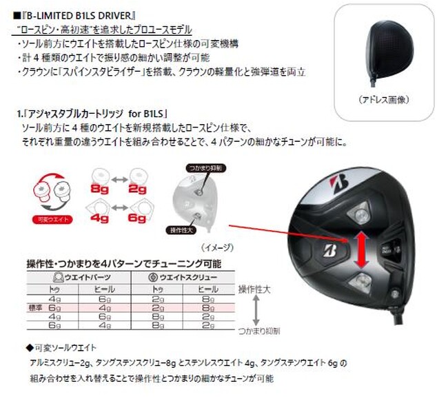 『B-Limited B1LS DRIVER』は、プロユースモデルとして『B1ST DRIVER』から更に強弾道を追求した低スピン・高初速設計になっています。