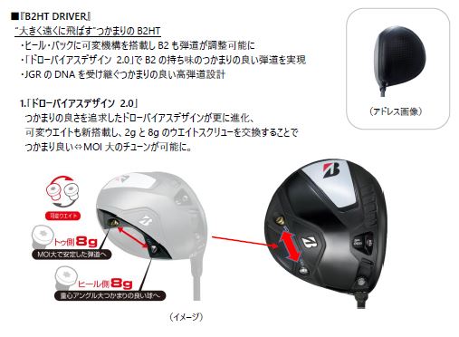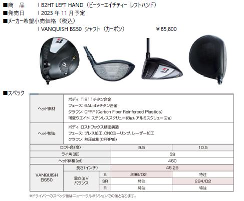 『B2HT DRIVER』は高弾道とつかまりを追求。今作から新たに搭載したウエイト可変機構で2パターンの弾道コントロールが可能になりました。『B2HT DRIVER』はLEFT HAND(レフトハンド)モデル※1もラインアップしています。
