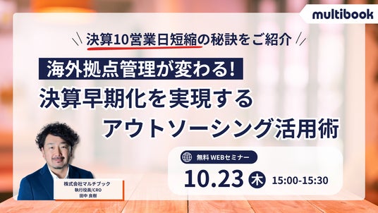 グローバルクラウドERPサービス「multibook(マルチブック)」を提供する株式会社マルチブック(東京都品川区、代表取締役社長:渡部 学)は、Webセミナー「海外拠点管理が変わる!決算早期化を実現するアウトソーシング活用術」を開催いたします。