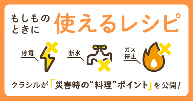 今回、クラシルはこれらのライフラインが停止した場合でも、温かな食事を作ることができるレシピを、備えておくと便利な日用品や、日常から気をつけたいポイントとともに整理してご紹介します。