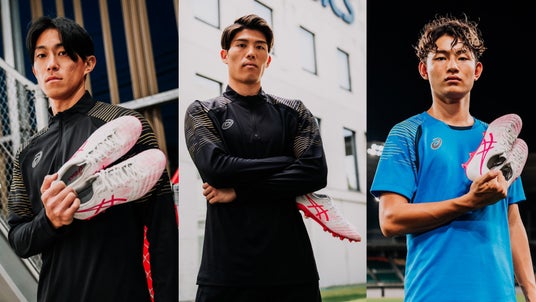 メーカー希望小売価格は、「DS LIGHT X-FLY PRO 2 LIMITED」が24,200円(税込)、「DS LIGHT X-FLY 5 LIMITED」が23,100円(税込)です。今回発売する商品は、日本の伝統模様「矢絣(やがすり)」をモチーフにしたグラフィックが特徴で、春らしいピンクカラーで「矢絣」模様を表現しています。どちらも通常モデルとは異なり、アッパー(甲被)全面にやわらかくフィット性に優れたマイクロファイバー人工皮革を採用した限定モデルです。本モデルは冨安健洋選手(所属:アーセナルFC)、毎熊晟矢選手(所属:セレッソ大阪)、古川陽介選手(所属:ジュビロ磐田)らが4月上旬から公式戦で着用予定です。
