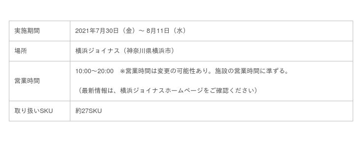 横浜ジョイナス POP UP SHOP 概要