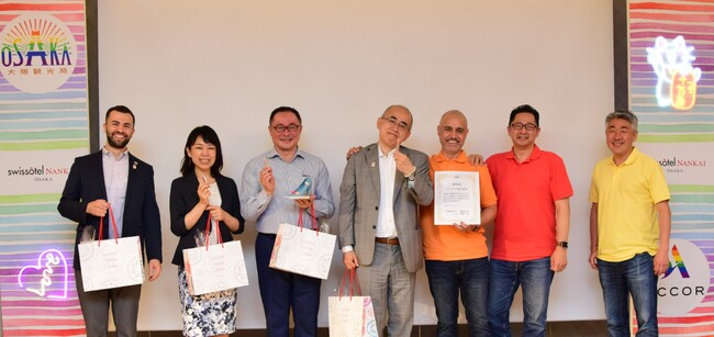 「IGLTA世界総会2024」の大阪開催についての記者会見が当ホテルにて行われた後、IGLTA財務担当副会長であるアンソニー・ワーナー氏より、IGLTA Accreditedの認定証を授与いただきました。本授与式にはスイスホテル南海大阪総支配人のシェーン・エドワーズをはじめとする経営委員会のメンバー、ダイバーシティ&インクルージョン担当のシャーリー・サンティアゴ、マリアンジェラ・シルベストレと共に、公益財団法人 大阪観光局のLGBTQアドバイザーである小泉伸太郎氏(株式会社アウト・ジャパン取締役会長)にもご出席いただきました。