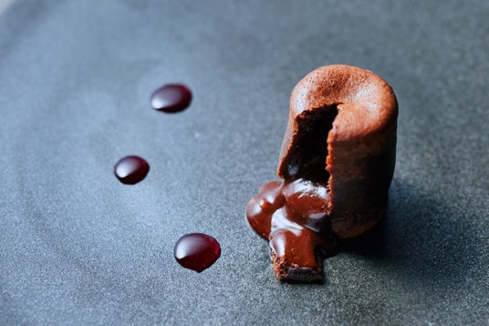 ショコラティエがその日ごとに焼き加減を調整し、自立しているのがやっとな程のレア感。添えられたジュレやソースと合わせて、味わいの変化もお楽しみください。