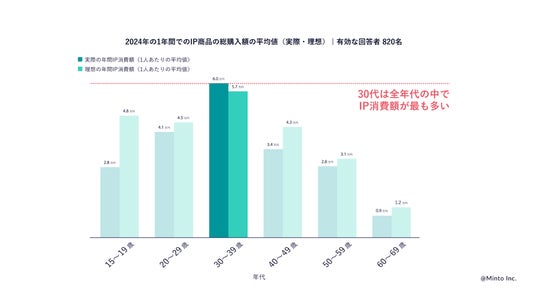特に30代は、今回のアンケート調査のすべての年代の中で、最もIP消費額が高いセグメントでした。