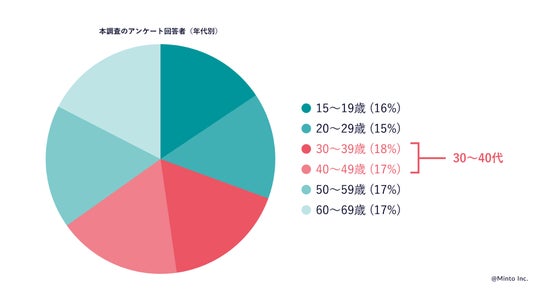 本調査において「あなたの年齢をお知らせください。」という設問で「30~39歳」「40~49歳」に含まれる年齢と回答した方を「30~40代」と定義しています。