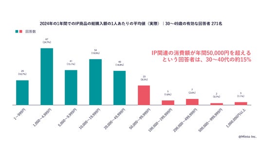 30~40代の約15%が、IP関連の消費額が年間50,000円を超える
