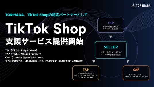 クリエイターDXカンパニーである株式会社TORIHADA(本社:東京都渋谷区、代表取締役社長:若井 映亮)は、TikTok Shopの認定パートナーである「TSP(TiKTok Shop Partner)」「TAP(TikTok Shop Affiliate Partner)」「CAP(Creator Agency Partner)」のすべてに認定されました。